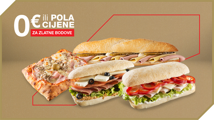Gladni ste? Okrijepite se s ponudom svježih ili pakiranih sendviča i focaccie. Iskoristite 200 Zlatnih bodova i priuštite si sendvič ili focacciu s 50 % popusta. Sakupite 400 Zlatnih bodova i vaš će biti za 0 €!